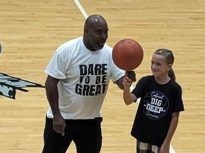 He uses humor and basketball to win audiences over, sharing stories that resonate with their unique experiences.